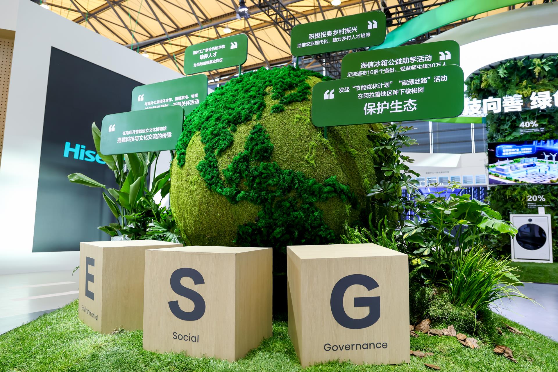 本届AWE,海信智慧能源展区围绕“全场景绿色共生”为核心打造全景体验展台。集中展示了自身ESG发展理念与落地成果,同步带来家庭绿色能源、工商业光储空一体式以及智慧能源全场景解决方案,以全场景技术落地切实推动绿色低碳发展。